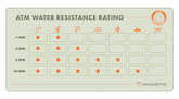 Mens uret er stænkafvisende, anbefaler vi at undgå langvarig udsættelse for vand for at bevare træets og remmens integritet. Du bør fjerne det før svømning eller brusebad.