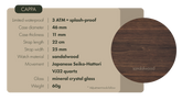 Woodme Cappa er et vidnesbyrd om naturens iboende skønhed og tidløse elegance. Fremstillet af det rigeste mørke sandeltræ og udsmykket med roseguldfarvede visere, bringer dette ur et stykke af den naturlige verden lige til dit håndled. Dets raffinerede design taler meget, og blander den unikke varme fra træ med sofistikeringen af moderne urmageri. Drevet af den pålidelige præcision af et japansk Miyota-værk og beskyttet af holdbart konisk safirkrystalglas, står Woodme Cappa som et symbol på holdbarhed, elegance og miljøbevidsthed.