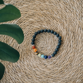 Smukt designet unisex armbånd lavet af lavasten og glasperler. Det perfekte match til dit træur og andre armbånd.