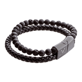 Unisex armbånd fra Woodme i en smuk kombination af læder og lavasten. Det perfekte match til dit træur.