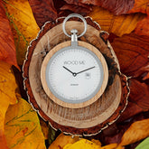 Woodme Oak er et tidløst og stilfuldt lommeur, der helt sikkert vil vække opsigt. Dette eksklusive ur er indkapslet i udsøgt egetræ og har en sort læderrem med stålkroge, så det nemt kan sættes fast på en vest, buksestrop eller taske.
