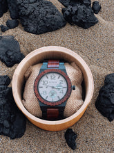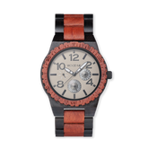 Woodme Vulcan er et helt unikt og iøjnefaldende ur, der er inspireret af de slående farvekombinationer af glødende lava, sorte sten og grå aske, der ses under vulkanudbrud.