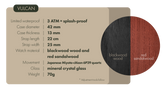 Mens uret er stænkafvisende, anbefaler vi at undgå langvarig udsættelse for vand for at bevare træets og remmens integritet. Du bør fjerne det før svømning eller brusebad.